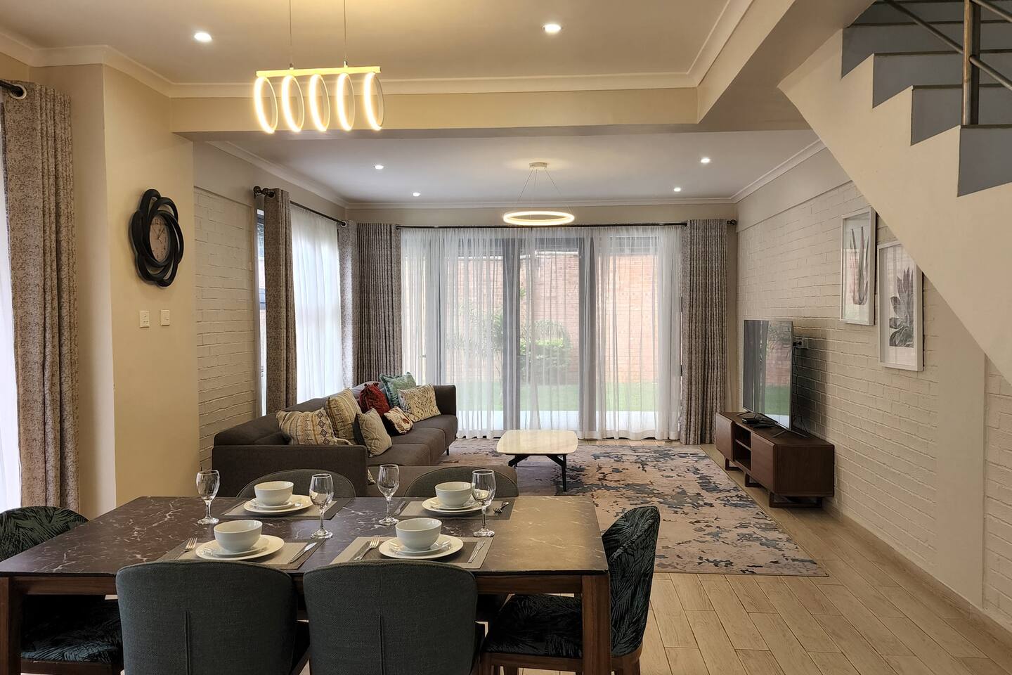 Welcome to your next adventure in Harare, Zimbabwe! Prepare to experience the melodic beats of mbira music fill the air at the bustling Avondale Flea Market, the aroma of freshly roasted maize wafts through the vibrant alleys of Mbare, and the iconic Jacaranda trees paint the city in hues of purple, creating a unique tapestry of culture, flavors, and the warm spirit of the Shona people. Step into luxury with this remarkable house featuring a spacious open concept living room adorned with plush, upholstered couches that invite you to sink into comfort. Sunlit tranquility fills the expansive space through big windows, creating an atmosphere of warmth and relaxation. Outside, an environmentally friendly garden awaits, where palm trees sway in the wind, offering a serene oasis that seamlessly blends nature with contemporary living. Once you’ve tucked away your luggage and settled in, it’s time to let loose and celebrate. Feel the excitement build up as you uncover a variety of premier amenities and thrilling pursuits at the property and the surrounding area, making our home an ideal launchpad for all of your Zimbabwe adventures: ✓ Enjoy a relaxed morning by slowly sipping a warm cup of coffee or tea in the kitchen, with cups and sugar at hand. ✓ Grab a bowl of popcorn and indulge in a cinematic extravaganza by watching all your favorite movies on Netflix and Amazon Prime. ✓ Head to the clubhouse, where you can spice up your time by challenging friends and family to a lively game of billiards, or kick back in style at the trendy lounge. ✓ Get your children to engage in the nearby playground, where they can navigate through slides, climbing walls, and ladders with laughter and boundless energy. ✓ Enhance your stay by booking a thrilling tour to exciting destinations including the Great Zimbabwe Ruins, the Domboshava Rock Paintings, a full day Harare city tour, and more! ✓ Test your golf swing at nearby golf courses including Borrowdale Brooke Golf Estate and the Royal Harare Golf Club (~25-minute drive).