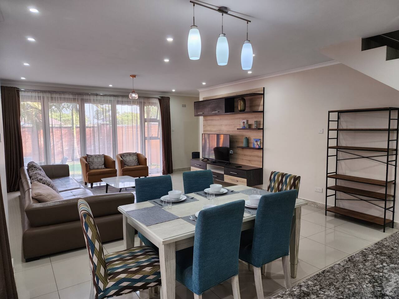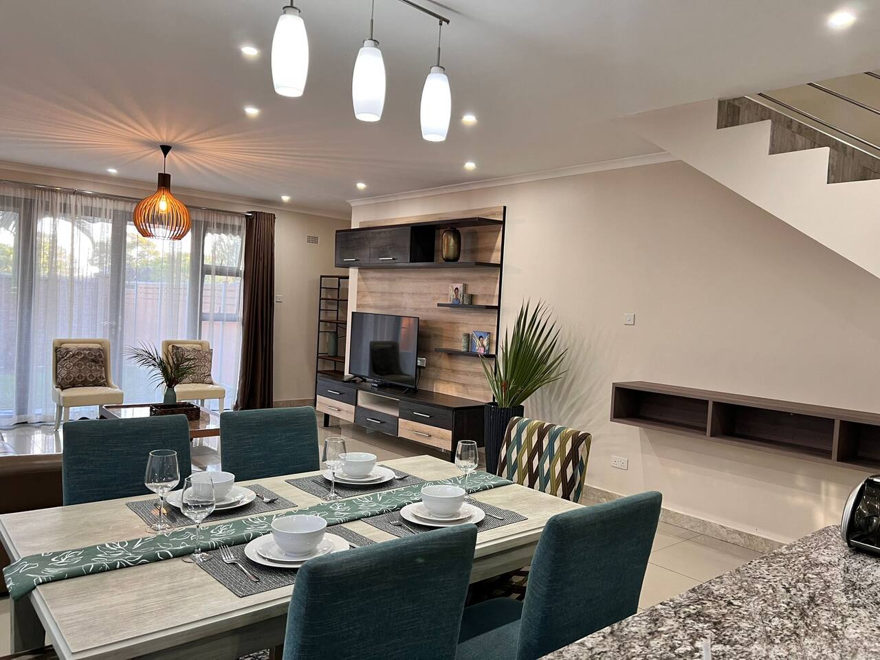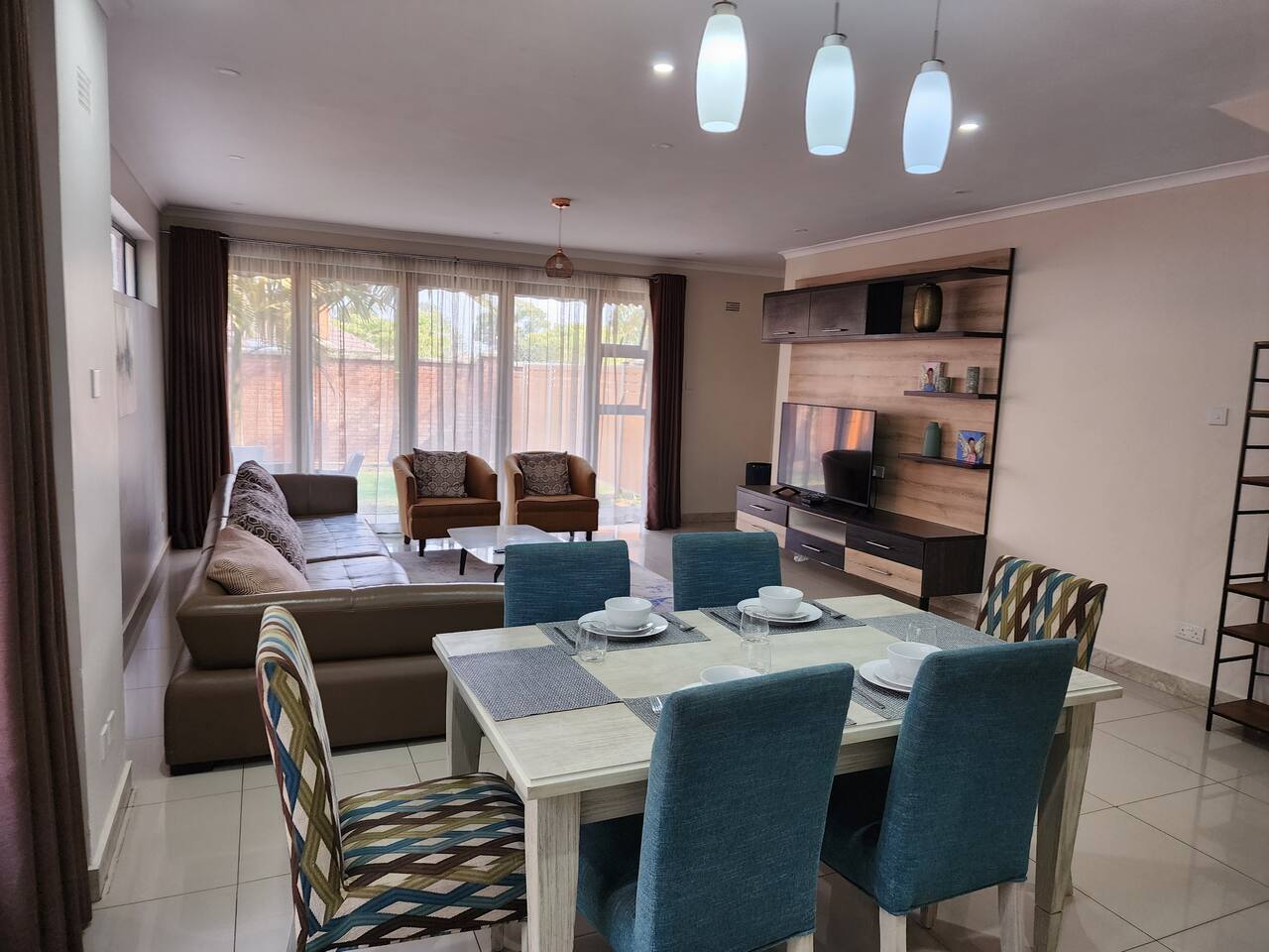 Peace of mind and sustainable living come standard at our complex. Worry-free water supply is assured with our large 14x10,000L water tanks, while a dependable 250kva generator kicks in during outages. Plus, back-up solar power adds environmental consciousness to your comfort. Security is paramount, and we take it seriously. A fully walled perimeter with electric fencing, coupled with 24/7 security, CCTV, alarms, and electric fence alerts, guarantees your safety and tranquility. Relax and enjoy the sunshine as your children play freely within the secure confines. Convenience and entertainment are woven into the fabric of our community. Park your cars with ease in the designated spaces, illuminate your evenings with solar lighting, and stay connected with the world through ZOL Fibre internet and DStv. Privacy is also cherished. Wood fencing around individual residences creates a personal sanctuary, allowing you to unwind and recharge in perfect serenity. Kitchen and Local Restaurants Unleash your inner chef in our culinary haven! Gleaming appliances & sleek design ignite your passion. Whip up feasts with ease - top-notch tools & inviting space await. Mouthwatering meals, effortlessly made, in this bright, luxurious playground. Enjoy: • Full size refrigerator • Microwave and stainless steel oven • Electric stove • Kettle • Toaster • Gourmet knife set and cutting board • Pots and pans • Plates, bowls, mugs, glasses and silverware Don’t feel like cooking? Have peace of mind that you can savor your tastebuds in a range of international and local restaurants, all located within a 10-15-minute drive away: • Thai (Chang Thai Restaurant) • Greek (The Village Greek) • Italian (Aroma Caffè) • Ethiopian (Queen Makeda) • Breakfast (Oak Tree) • Lunch (Leovilla) • British Style Pub (The Bishop's Mistress) • Steak (Khaya Nyama Wombles) • Fine Dining (Victoria 22 Restaurant) Bedrooms and Bathrooms Sink into blissful sleep after Zimbabwean adventures in one of our 3 havens. Exposed brick walls whisper rustic charm, while comfy memory foam mattresses promise slumber as soft as the setting sun. (Picture: cozy bedrooms with warm brick accents, bathed in the soft glow of bedside lamps, inviting beds with fluffy comforters) Luxury in every thread: Surrender to the caress of silky linens, plump pillows cradling your head, and room-darkening shades painting the canvas of night for uninterrupted sleep. Up to 6 guests can rest comfortably, each bedroom boasting a king-size mattress, dual nightstands, and a spacious closet for unpacking and settling in. As the sun dips below the horizon, retreat to our 2 immaculate bathrooms for a rejuvenating escape. (Imagine: sleek, modern bathrooms with gleaming fixtures, soft towels piled on racks) Let worries melt away under the invigorating spray of a hot shower or sink into a relaxing bubble bath, complemented by a curated selection of bath essentials: ✓ Hair dryer for bouncy, post-bath blowouts ✓ Body soap to pamper your skin ✓ Shampoo and conditioner to leave your hair silky smooth ✓ Fresh bath towels for ultimate comfort ✓ Starter pack of toilet paper for your convenience Emerg 100% refreshed and ready to embrace your next Zimbabwean adventure!